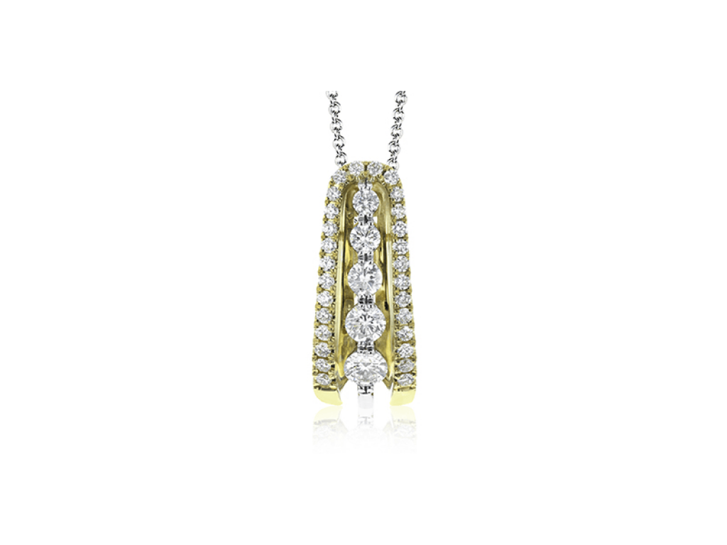 PrPresenting a dramatic contemporary design, this white gold pendant is accentuated by .60 ctw of round cut diamonds in graduated sizes.